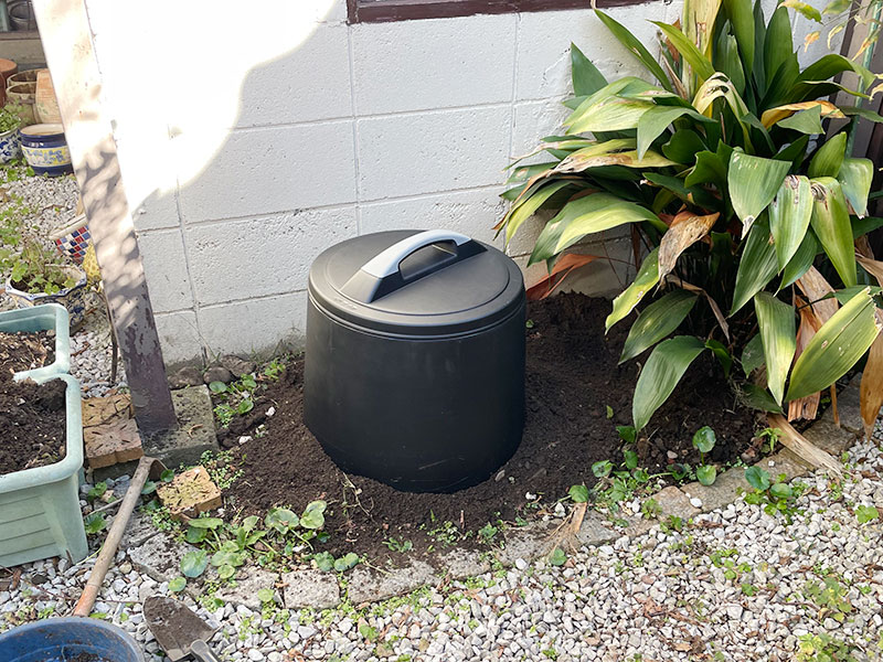 庭にコンポストの設置が完了