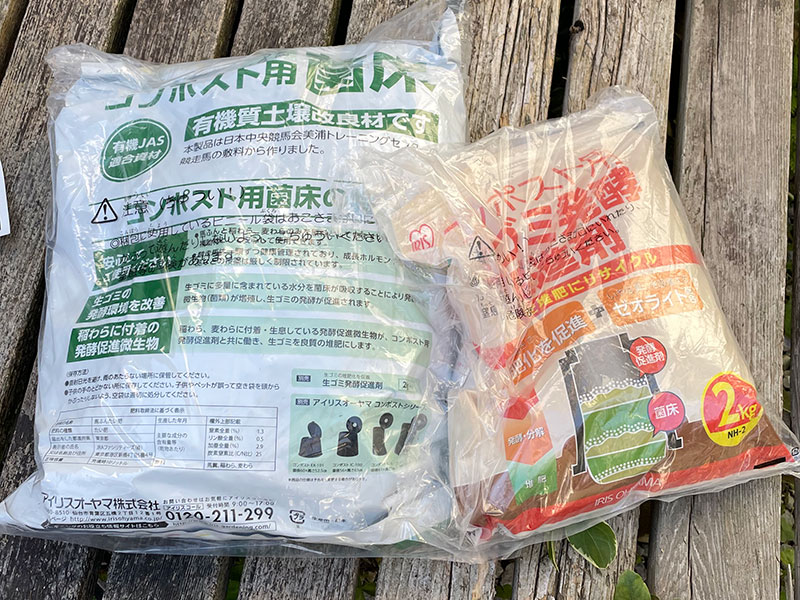 菌床と生ゴミ発酵促進剤と