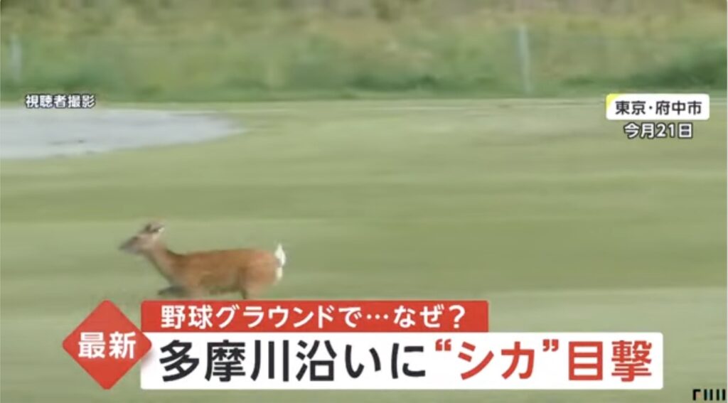 多摩川沿いにシカが現れたそうだ