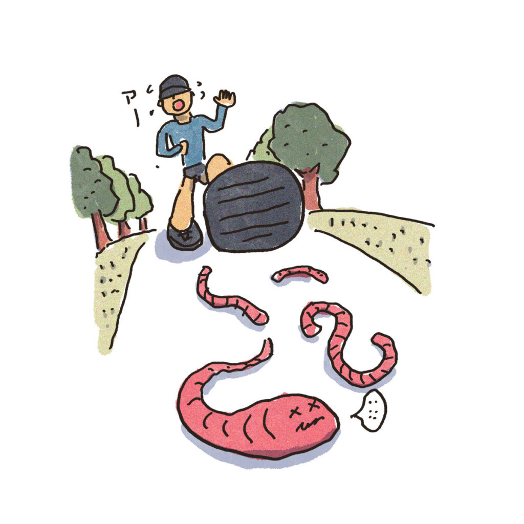 ミミズのかんぴんたん 2024 7/25 日記 2024年7月22日 この時期のランニングは油断ができない道路がミミズだらけなのだ苦しそうにウネウネと動き干からびているのもある踏んでしまった時は、、、 訪問診察の看護師さんが三重県の出身で干からびたものを「かんぴんたん」と言うそうだ 日記 81歳のランナー つくづく疲れた 関連記事 もう考えても歯は生えてこない 2026年2月12日 衆議院選挙2026 2026年2月9日 さいたまマラソン2026 2026年2月8日 セカンドオピニオン 2026年2月5日 Apple Creator Studio 2026年2月2日 最後の晩餐のときに 2026年1月31日 今日は7本 2026年1月29日 矢田みくに選手 2026年1月25日