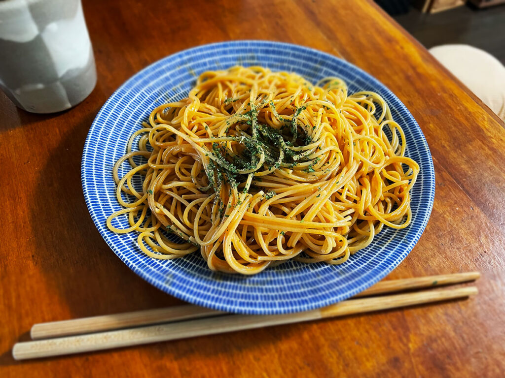 (全粒粉のパスタなので写真は焼きそばみたいだけど)