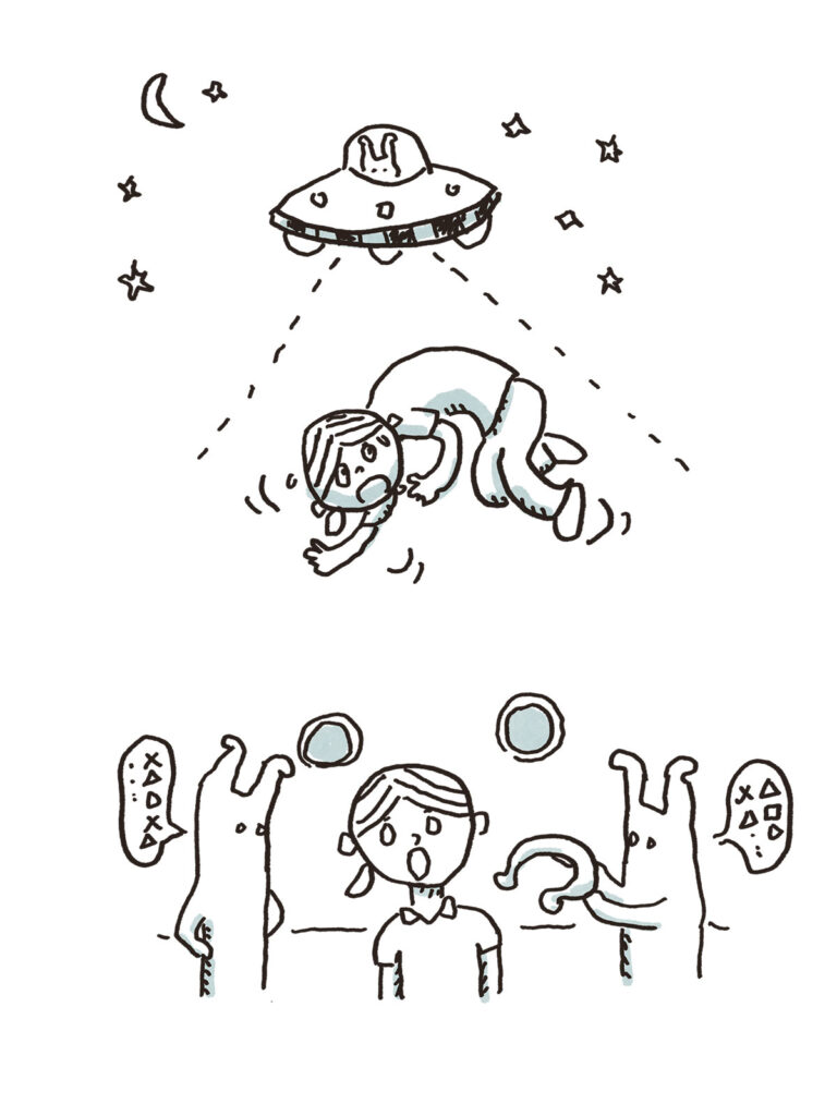 宇宙船に連れ去られ
